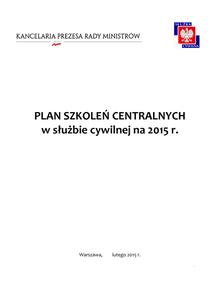 PLAN SZKOLEŃ CENTRALNYCH w służbie cywilnej na 2015 r.