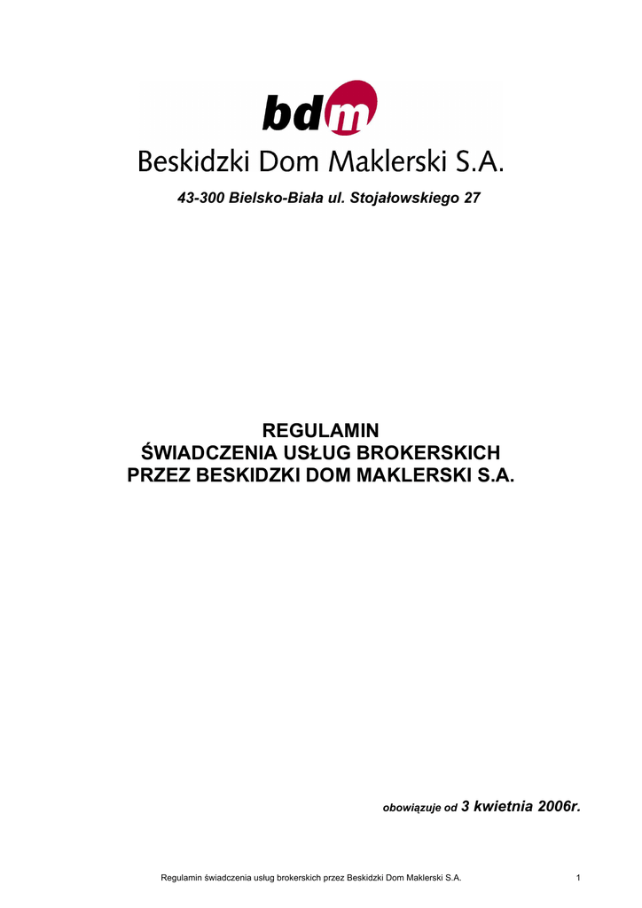 regulamin wiadczenia us˛ug brokerskich przez beskidzki dom