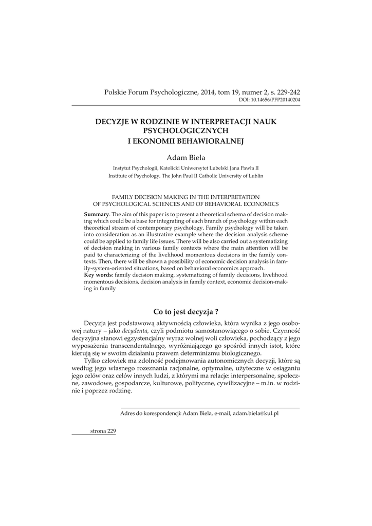 DECYZJE W RODZINIE W INTERPRETACJI NAUK