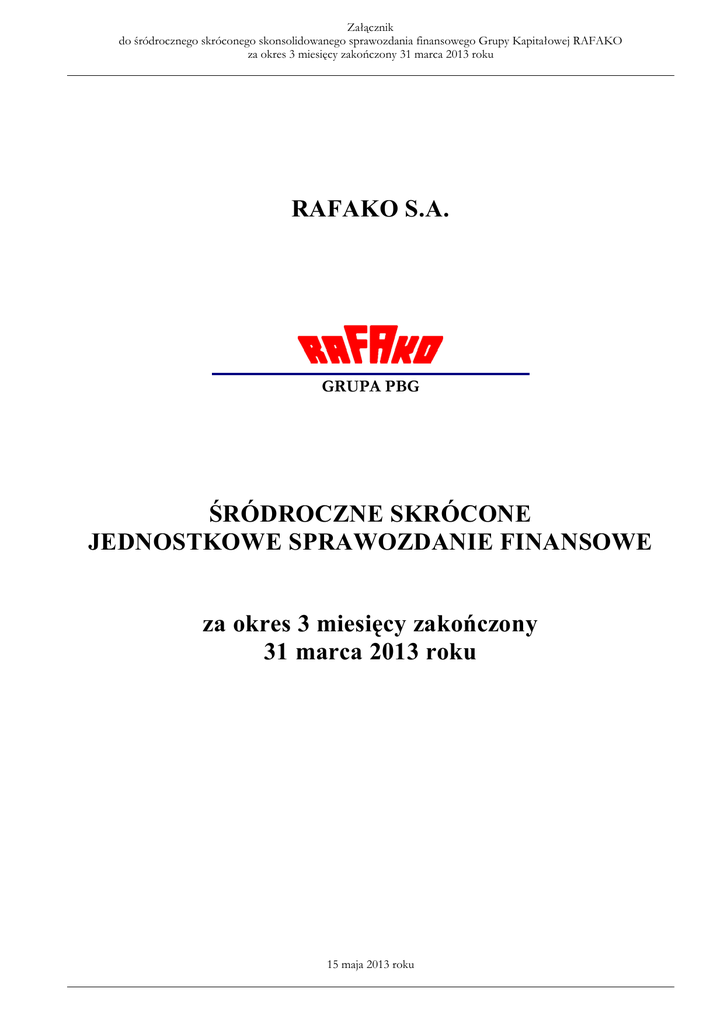 numer 50 Zarządu RAFAKO S.A. z dnia 15 maja 2013 roku.