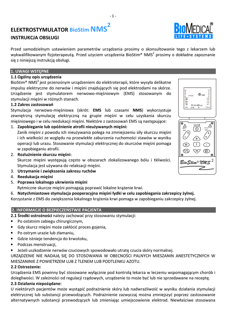Instrukcja obsługi elektrostymulatora BioStim NMS2