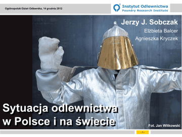 Ogólnopolski Dzień Odlewnika, 14 grudnia 2012 Jerzy J. Sobczak Elżbieta Balcer Agnieszka Kryczek Sytuacja odlewnictwa w Polsce i na świecie Fot. Jan Witkowski -1- Ogólnopolski Dzień Odlewnika, 14 grudnia 2012 ŚWIAT – Produkcja odlewów 2011 • Wielkość globalnej produkcji odlewów – 99,2 mln ton • Wzrost w stosunku do roku 2010 – 7,8% USA: 10 mln t. Niemcy: 5,5 mln t. Rosja: 4,3 mln t. Europa: 21,9 mln t. Japonia : 5,5 mln t. Ameryka Północna: 12,4 mln t. Brazylia : 3,3 mln t. Afryka: 0,4 mln t. Chiny: 41,3 mln t. Indie: 9,99 mln t. Źródło: Modern Casting Dec/2012; CAEF – The European Foundry Industry 2011, Dane statystyczne Instytutu Odlewnictwa -2- Ogólnopolski Dzień Odlewnika, 14 grudnia 2012 ŚWIAT - Produkcja odlewów w czołowych krajach w świecie – 2011 USA 45 000 41 260 Wielkość produkcji w tys. ton 40 000 • znaczny wzrost produkcji od roku 2010 - o 21% • powrót do 2 pozycji w produkcji na świecie, nieznacznie przed Indiami • pomimo wzrostu, USA nie osiągnęły poziomu sprzed roku 2009 35 000 30 000 Wzrost produkcji: Japonia – 15% 25 000 Niemcy – 14% 20 000 Polska – 14% (niezmienny udział Polski na świecie) 15 000 10 000 Indie – 10% 10 008 9 994 5 474 5 467 5 000 1 030 0 * Dane za rok 2009 Źródło: Modern Casting Dec/2012; CAEF – The European Foundry Industry 2011, Dane statystyczne Instytutu Odlewnictwa -3- Ogólnopolski Dzień Odlewnika, 14 grudnia 2012 ŚWIAT – Tendencje w produkcji odlewów 2000-2011 120 000 Wielkość produkcji w tys. ton 100 000 • Globalna produkcja odlewów roku 2011 przekroczyła poziom z roku 2007 (sprzed okresu światowego kryzysu gospodarczego) 94 919 93 449 99 185 101 700 2011 2015* 92 013 80 424 80 000 60 000 40 000 20 000 0 2000 2001 2002 2003 2004 2005 2006 2007 2008 2009 2010 Lata odlewy ogółem żeliwo szare żeliwo sferoidalne i ciągliwe * dane prognozowane staliwo Źródło: Modern Casting Dec/2012; CAEF – The European Foundry Industry 2011, Dane statystyczne Instytutu Odlewnictwa, Materiały z 69 Światowego Kongresu Odlewników w Chinach stopy aluminium -4- Ogólnopolski Dzień Odlewnika, 14 grudnia 2012 ŚWIAT – Produkcja odlewów 2011 • Pomimo ciągłego wzrostu produkcji w Chinach, ich udział w produkcji globalnej nieznacznie spada (z 44% w roku 2009) USA 10% Chiny 42% Indie 10% • Wzrost udziału produkcji USA, Japonii • Spadek udziału produkcji Rosji, Brazylii Pozostałe 8% UE 15% Rosja 4% Japonia 6% • Indie na tym samym poziomie co w roku ubiegłym Brazylia 3% Polska 1% Źródło: Modern Casting Dec/2012; CAEF – The European Foundry Industry 2011, Dane statystyczne Instytutu Odlewnictwa -5- Ogólnopolski Dzień Odlewnika, 14 grudnia 2012 ŚWIAT – Tendencje w produkcji odlewów głównych producentów 2000-2011 40 000 Wielkość produkcji w tys. ton 35 000 • Ponad 3,5-krotny wzrost produkcji w Chinach oraz 3-krotny w Indiach od roku 2000 Chiny 30 000 25 000 20 000 15 000 USA 10 000 Japonia 5 000 Indie Brazylia Korea 0 2000 2001 2002 2003 2004 2005 2006 2007 2008 2009 Lata Źródło: Modern Casting Dec/2012; CAEF – The European Foundry Industry 2011 -6- 2010 2011 Ogólnopolski Dzień Odlewnika, 14 grudnia 2012 EUROPA – Tendencje w produkcji odlewów 2000-2011 30 000 • • • Europa - wzrost produkcji w stosunku do roku 2010 o około 9% Kraje Unii Europejskiej – wzrost o około 11 % Produkcja w Europie nie powróciła do poziomu z przed okresu recesji (27 mln ton w 2007) 27 166 25 473 Wielkość produkcji w tys. ton 25 000 23 598 21 894 20 097 20 000 15 000 10 000 5 000 0 2000 2001 2002 2003 2004 2005 2006 2007 2008 2009 2010 Lata odlewy ogółem w Europie odlewy ze stopów żelaza odlewy ze stopów metali nieżelaznych Źródło: Modern Casting Dec/2012; CAEF – The European Foundry Industry 2011, Dane statystyczne Instytutu Odlewnictwa -7- 2011 Ogólnopolski Dzień Odlewnika, 14 grudnia 2012 EUROPA – Tendencje w produkcji odlewów głównych producentów 2000-2011 (z uwzględnieniem Polski) 9 000 8 000 • aktualne dane z Rosji Rosja Wielkość produkcji w tys. ton 7 000 6 000 Niemcy 5 000 4 000 Francja 3 000 Włochy 2 000 Turcja 1 000 Polska 0 2000 2001 2002 2003 2004 2005 2006 2007 2008 2009 Lata Źródło: Modern Casting Dec/2012; CAEF – The European Foundry Industry 2011, Dane statystyczne Instytutu Odlewnictwa -8- 2010 2011 Ogólnopolski Dzień Odlewnika, 14 grudnia 2012 EUROPA – Udział w produkcji odlewów czołowych producentów - 2011 Rosja 19% Niemcy 25% Francja 9% Pozostałe 9% Ukraina 5% Czechy 2% Wielka Brytania 3% Włochy 10% Hiszpania 6% Turcja 7% Polska 5% Źródło: Modern Casting Dec/2012; CAEF – The European Foundry Industry 2011, Dane statystyczne Instytutu Odlewnictwa -9- Ogólnopolski Dzień Odlewnika, 14 grudnia 2012 EUROPA – Produkcja odlewów 2011 6 000 • Niemcy liderem w produkcji odlewów w Europie 5 467 • Produkcja odlewów w Polsce w 2011 roku przekroczyła 1 mln ton ! 5 000 Wielkość produkcji w tys. ton 4 300 4 000 • Wzrost pozycji Polski w stosunku do roku 2010 wśród krajów europejskich 3 000 2 213 2 000 1 030 1 000 0 * dane za rok 2009 Źródło: Modern Casting Dec/2012; CAEF – The European Foundry Industry 2011, Dane statystyczne Instytutu Odlewnictwa - 10 - Ogólnopolski Dzień Odlewnika, 14 grudnia 2012 EUROPA – Produkcja odlewów ze stopów żelaza 2011 • Ósma pozycja Polski wśród krajów europejskich 5 000 4 500 • Turcja w czołówce europejskich krajów produkujących odlewy ze stopów żelaza (w roku 2009 na 6 pozycji) 4 492 Wielkość produkcji w tys. ton 4 000 3 500 3 000 2 500 2 000 1 675 1 500 1 000 700 500 0 * dane za rok 2009 Źródło: Modern Casting Dec/2012; CAEF – The European Foundry Industry 2011, Dane statystyczne Instytutu Odlewnictwa - 11 - Ogólnopolski Dzień Odlewnika, 14 grudnia 2012 EUROPA – Produkcja odlewów ze stopów metali nieżelaznych 2011 1 200 Wielkość produkcji w tys. ton 1 000 • Piąta pozycja Polski wśród krajów europejskich • Włochy 