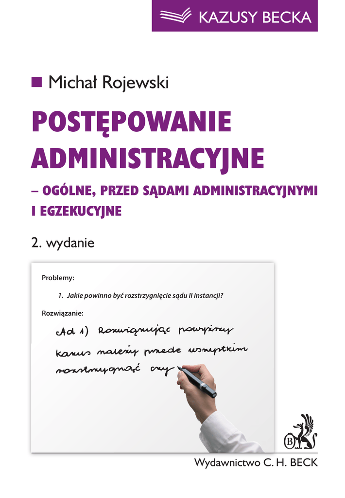 KAZUSY BECKA Michał Rojewski POSTĘPOWANIE ADMINISTRACYJNE – OGÓLNE, PRZED SĄDAMI ADMINISTRACYJNYMI I EGZEKUCYJNE 2. wydanie Problemy: 1. Jakie powinno być rozstrzygnięcie sądu II instancji? Rozwiązanie: Wydawnictwo C. H. BECK KAZUSY BECKA Postępowanie administracyjne – ogólne, przed sądami administracyjnymi i egzekucyjne W sprzedaży: M. Wierzbowski (red.) POSTĘPOWANIE ADMINISTRACYJNE – OGÓLNE, PODATKOWE, EGZEKUCYJNE I PRZED SĄDAMI ADMINISTRACYJNYMI, wyd. 12 Podręczniki Prawnicze P. Gołaszewski POSTĘPOWANIE ADMINISTRACYJNE I SĄDOWOADMINISTRACYJNE. TESTY. KAZUSY Ćwiczenia Becka P. Gołaszewski POSTĘPOWANIE ADMINISTRACYJNE I SĄDOWOADMINISTRACYJNE Plansze Becka R. Kędziora OGÓLNE POSTĘPOWANIE ADMINISTRACYJNE Akademia Prawa M. Rojewski, A. Suławko-Karetko KODEKS POSTĘPOWANIA ADMINISTRACYJNEGO. ORZECZNICTWO Zbiory Orzecznictwa Becka J. Borkowski (wprow.) KODEKS POSTĘPOWANIA ADMINISTRACYJNEGO, wyd. 23 Teksty Ustaw Becka www.ksiegarnia.beck.pl Michał Rojewski POSTĘPOWANIE ADMINISTRACYJNE – OGÓLNE, PRZED SĄDAMI ADMINISTRACYJNYMI I EGZEKUCYJNE 2. wydanie Wydawnictwo C. H. BECK Warszawa 2013 Redakcja: Katarzyna Pudłowska Wydawca: Joanna Ablewicz Projekt okładki: Robert Rogiński © Wydawnictwo C.H. Beck 2013 Wydawnictwo C.H. Beck Sp. z o.o. ul. Bonifraterska 17, 00-203 Warszawa Skład i łamanie: IGAWA Druk i oprawa: P.W.P. Interdruk, Warszawa ISBN 978-83-255-4824-7 ISBN e-book 978-83-255-4825-4 Spis treści Przedmowa_________________________________________________ IX Wykaz skrótów______________________________________________ XI Wykaz podstawowej literatury________________________________ XIII Rozdział I. Postępowanie administracyjne ogólne________________ Kazus 1. Kazus 2. Kazus 3. Kazus 4. Kazus 5. Kazus 6. Kazus 7. Kazus 8. Kazus 9. Kazus 10. Kazus 11. Kazus 12. Kazus 13. Kazus 14. Kazus 15. Kazus 16. Kazus 17. Kazus 18. Kazus 19. Kazus 20. 1 Zakres obowiązywania Kodeksu postępowania administracyjnego____________________________________1 Wyłączenie stosowania Kodeksu postępowania administracyjnego____________________________________3 Zasada przekonywania________________________________5 Zasada szybkości postępowania________________________6 Zasada wysłuchania stron_____________________________7 Właściwość organu ___________________________________8 Właściwość miejscowa organu _________________________10 Wyłączenie pracownika oraz organu____________________12 Wyłączenie członka organu kolegialnego________________14 Strona postępowania__________________________________16 Organizacja społeczna_________________________________17 Udział organizacji społecznej w postępowaniu___________18 Pełnomocnictwo______________________________________20 Załatwianie spraw____________________________________21 Terminy na rozpoznanie wniosku_______________________23 Doręczenia__________________________________________25 Doręczenie zastępcze__________________________________26 Terminy przewidziane w Kodeksie postępowania administracyjnego ____________________________________28 Przywrócenie terminu_________________________________30 Wszczęcie postępowania_______________________________31 M. Rojewski, Postępowanie administracyjne V Spis treści Kazus 21. Kazus 22. Kazus 23. Kazus 24. Kazus 25. Kazus 26. Kazus 27. Kazus 28. Kazus 29. Kazus 30. Kazus 31. Kazus 32. Kazus 33. Kazus 34. Kazus 35. Kazus 36. Kazus 37. Kazus 38. Kazus 39. Kazus 40. Kazus 41. Kazus 42. Kazus 43. Kazus 44. Kazus 45. Podania wnoszone drogą elektroniczną__________________32 Sposób wnoszenia podania ____________________________34 Przekazanie wniosku zgodnie z właściwością____________35 Pozostawienie wniosku bez rozpoznania________________37 Metryka sprawy _____________________________________39 Protokoły i adnotacje__________________________________40 Wymagania formalne protokołu________________________42 Udostępnianie akt____________________________________44 Przeprowadzanie dowodów w sprawie _________________45 Przesłuchanie świadka ________________________________47 Udział biegłego ______________________________________49 Rozprawa administracyjna_____________________________50 Nieusprawiedliwione stawiennictwo____________________52 Zawieszenie postępowania ____________________________53 Elementy decyzji administracyjnej______________________55 Prostowanie pomyłek_________________________________57 Postanowienia_______________________________________58 Odwołania __________________________________________59 Wznowienie postępowania____________________________61 Wniosek o ponowne rozpatrzenie sprawy_______________63 Upoważnienie pracowników przez organ administracji____64 Udział prokuratora___________________________________65 Wydawanie zaświadczeń______________________________66 Skargi_______________________________________________67 Wnioski_____________________________________________68 Rozdział II. Postępowanie przed sądami administracyjnymi_______ Kazus 1. Kazus 2. Kazus 3. Kazus 4. Kazus 5. Kazus 6. Kazus 7. Kazus 8. VI 69 Warunki złożenia skargi do wojewódzkiego sądu administracyjnego____________________________________69 Zasada dwuinstancyjności_____________________________71 Przesłanki formalne do powołania na sędziego Naczelnego Sądu Administracyjnego____________________73 Skład sądu___________________________________________75 Wyłączenie sędziego od udziału w postępowaniu_________77 Procedura wyłączenia sędziego_________________________79 Postępowanie dyscyplinarne___________________________81 Pełnomocnictwo w postępowaniu przed sądami administracyjnymi____________________________________82 M. Rojewski, Postępowanie administracyjne Spis treści Kazus 9. Kazus 10. Kazus 11. Kazus 12. Kazus 13. Kazus 14. Kazus 15. Kazus 16. Kazus 17. Kazus 18. Postępowanie mediacyjne_____________________________84 Skarga kasacyjna_____________________________________86 Przymus adwokacko-radcowski przy skardze kasacyjnej___8
