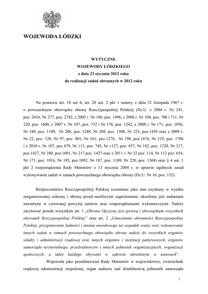 Wytyczne Wojewody Łódzkiego z dnia 23 stycznia 2012 r. do