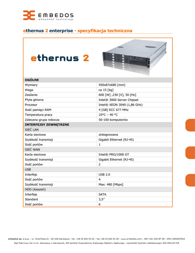 ethernus 2 enterprise - specyfikacja techniczna
