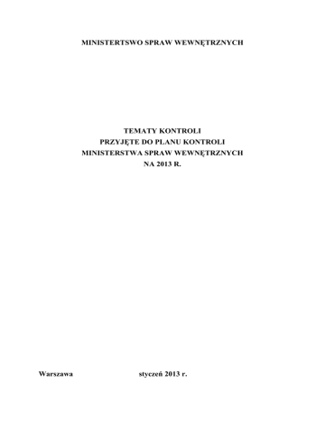 Tematy kontroli przyjęte do planu kontroli Ministerstwa Spraw