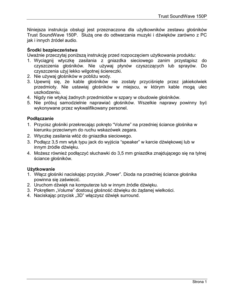 Trust SoundWave 150P Niniejsza instrukcja obsługi jest