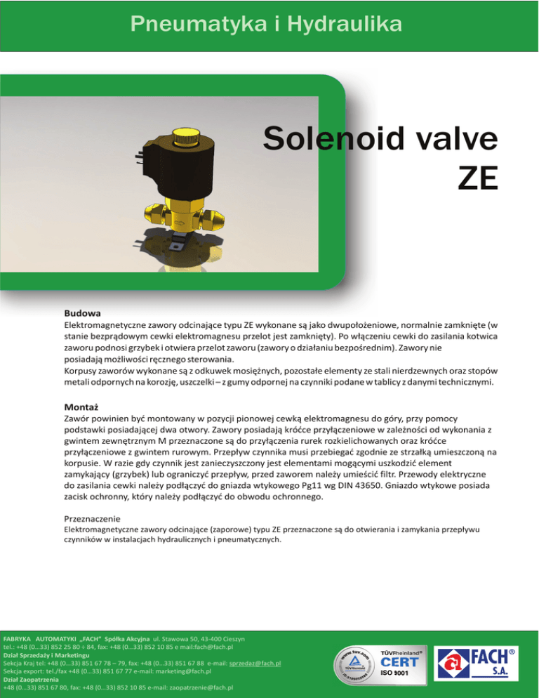 Solenoid valve ZE - Zawory elektromagnetyczne