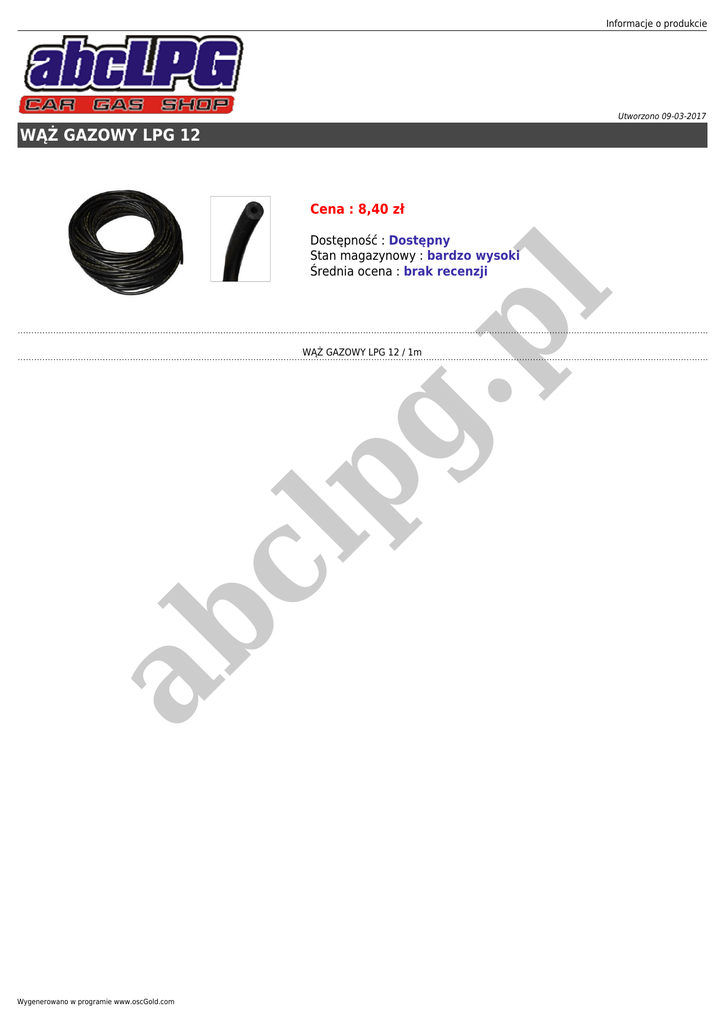 Informacje o produkcie Utworzono 09-03-2017 WĄŻ GAZOWY LPG 12 Cena : 8,40 zł pg .p l Dostępność : Dostępny Stan magazynowy : bardzo wysoki Średnia ocena : brak recenzji ab cl WĄŻ GAZOWY LPG 12 / 1m Wygenerowano w programie www.oscGold.com