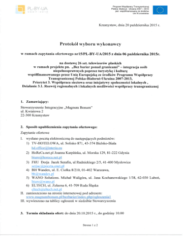 w ramach zapytania ofertowego nr15/PL-BY-UN2015 z dnia 06 patdziernika 2015r.