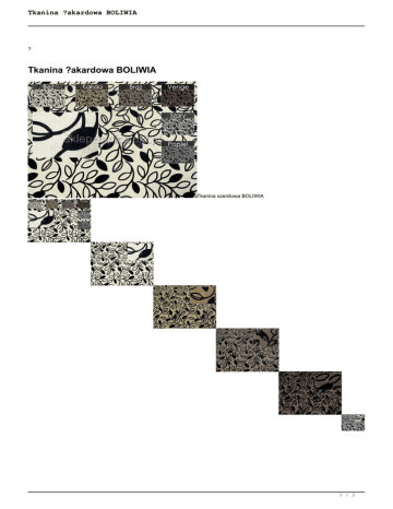 Tkanina ?akardowa BOLIWIA ? Tkanina ?akardowa BOLIWIA Tkanina szenilowa BOLIWIA 1 / 2 Tkanina ?akardowa BOLIWIA 1 szt. = 1 mb (metr bie??cy) tkaniny Boliwia Ocena: Nie ma jeszcze oceny Cena 38,00 z? 30,89 z? 38,00 z? 7,11 z? Zapytaj o produkt Opis Dost?pno?? Rodzaj tkaniny Sk?ad Dost?pne kolory Koordynat W magazynie - wysy?ka w 24h Tkanina ?akardowo-szenilowa 100% Poliester Be?, Kakao, Br?z, Venge, Szary, Popiel G?adk? tkanin? pasuj?c? do BOLIWIA jest: Tkanina ?akardowa ELENA Tkanina ?akardowa KALINKA Szeroko?? tkaniny Gramatura Czyszczenie tkaniny Gwarancja 140 cm 320 g/m2 Tkanin? BOLIWIA czy?ci? mi?kk? szmatk? zwil?on? ?agodnym detergentem (myd?o). Po czyszczeniu, nale?y zmy? czyst? wod? detergent (myd?o) i pozostawi? do samoczynnego wyschni?cia (nie u?ywa? suszarki). Uwaga! Nie wolno u?ywa? silnych detergentów oraz ?rodków dezynfekcyjnych skoncentrowanych (nie wystawia? na kontakt z rozpuszczalnikami organicznymi). Nie u?ywa? twardej szczotki. Producenta Opinie Nikt jeszcze nie recenzowa? tego produktu. 2 / 2 Powered by TCPDF (www.tcpdf.org)