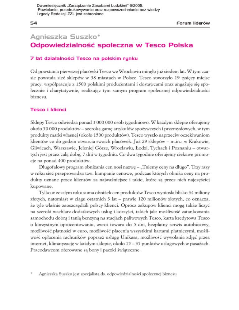 Agnieszka Suszko* Odpowiedzialność spo³eczna w Tesco