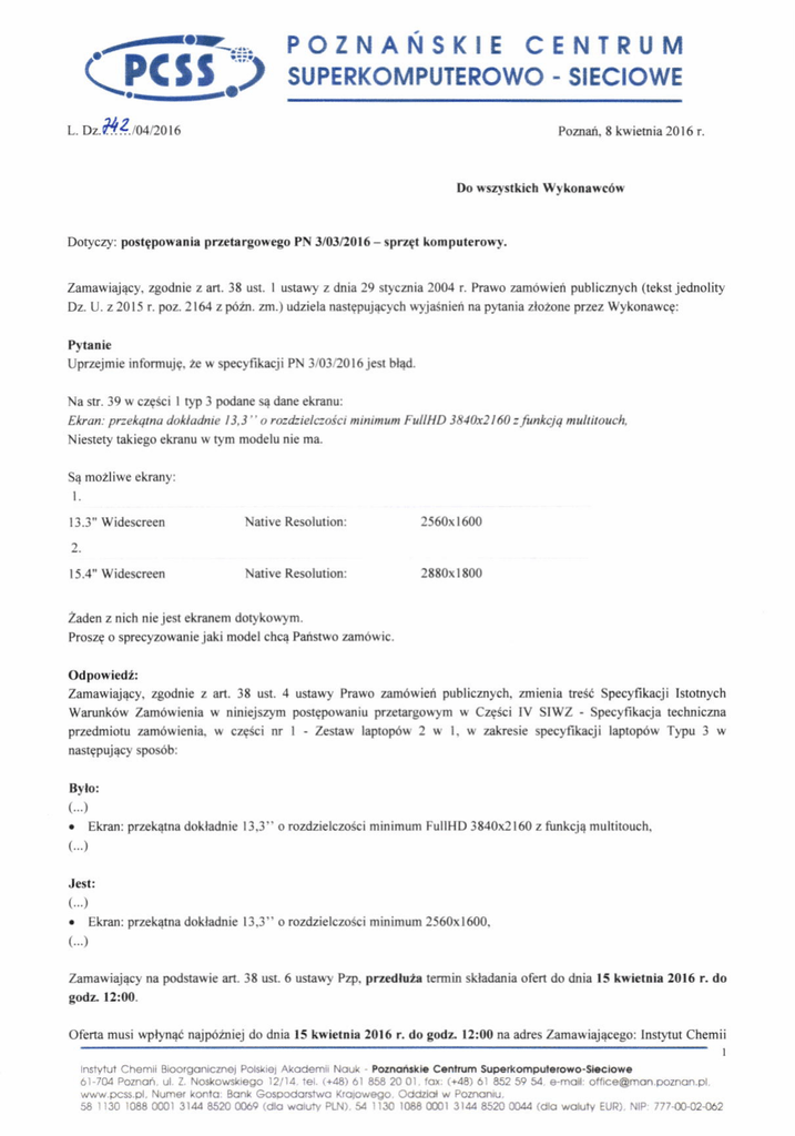 Dotyczy: postfpowrnis pnztrrgowcgo PN 3/03t016