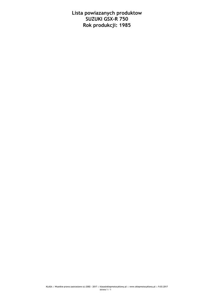 Lista powiazanych produktow SUZUKI GSX-R 750 Rok produkcji: 1985 KLASA :: Wszelkie prawa zastrzeżone (c) 2002 - 2017 :: [email protected] :: www.sklepmotocyklowy.pl :: 9.03.2017 strona 1 / 1