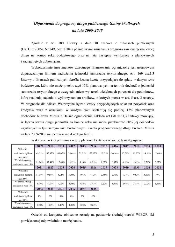 Objaśnienia do prognozy długu publicznego Gminy Wałbrzych