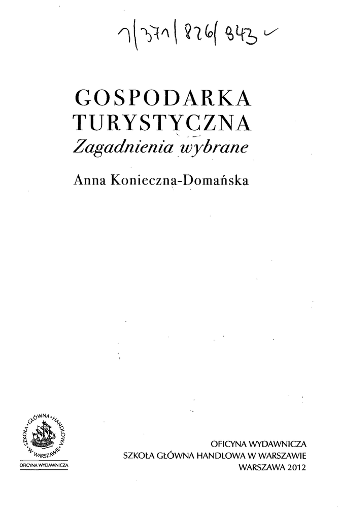 GOSPODARKA TURYSTYCZNA Zagadnienia wybrane Anna Konieczna-Domańska • OFICYNA WYDAWNICZA SZKOŁA GŁÓWNA HANDLOWA W WARSZAWIE OF.CYNAWYDAWMCZA WARSZAWA 201 2 Spis treści. Wprowadzenie 9 Rozdział I Turystyka jako zjawisko społeczno-ekonomiczne 1. Natura zjawiska 2. Powstanie popytu i jego przedmiot 3. Działalność gospodarcza odpowiadająca na popyt 4. Turystyka jako sfera życia społeczno-gospodarczego 5. Turystyka i turysta - ujęcie formalne 11 11 12 13 15 16 Rozdział II Popyt turystyczny 1. Czynniki wyznaczające popyt turystyczny 1.1. Czas wolny 1.2. Czynniki demograficzne 1.3. Inne czynniki cywilizacyjne. -. 1.4. Czynniki ekonomiczne 1.4.1. Dochody 1.4.2. Ceny '. 1.4.3. Czynniki podażowe . i 2. Zakres przedmiotowy popytu turystycznego 3. Cechy popytu turystycznego 17 17 18 19 20 21 21 23 24 26 33 Rozdział III Podaż turystyczna ,. 1. Produkt turystyczny 2. Cechy podaży turystycznej (produktu turystycznego) 3. Pojęcie gospodarki turystycznej 4. Przedsiębiorstwo turystyczne i jego najważniejsze typy 37 37 41 44 46 Spis treści Rozdział IV Funkcjonowanie przedsiębiorstw turystycznych - przedsiębiorstwa hotelarskie.... 49 1. Pojęcie hotelarstwa, jego funkcje w zaspokojeniu potrzeb ruchu turystycznego oraz rodzaje bazy noclegowej dla turystyki 49 2. Miejsce hoteli w bazie noclegowej turystyki 3. Cechy hotelu ważne z punktu widzenia jego funkcji w obsłudze ruchu turystycznego .. 4. Typy hoteli 5. Produkt hotelu. Rodzaje działalności usługowej _.._.. 6. Struktura funkcjonalno-użytkowa hotelu 7. Kapitał ludzki i praca w hotelu 8. Podstawowe tendencje rozwoju współczesnego hotelarstwa 8.1. Kształtowanie programu usługowego hotelu 8.2. Stosowanie zasad zrównoważonego rozwoju w hotelach 8.3. Tworzenie form powiązań poziomych w obrębie sektora hoteli 9. Mikroekonomia hotelu - zagadnienia wybrane 9.1. Mierniki działalności hotelu 9.2. Inwestycje w hotelarstwie 9.3. Koszty w hotelarstwie 9.4. Rentowność usług noclegowych w obiektach hotelarskich 9.5. Maksymalizacja funkcji celu producenta usług noclegowych a popyt na jego usługi 10. Organizacje branżowe w hotelarstwie w Polsce 11. Międzynarodowe organizacje działające w sektorze hotelarstwa i gastronomii . . . . 12. Rynek hotelarski w Polsce i w Europie Rozdział V Funkcjonowanie przedsiębiorstw turystycznych - biura podróży 1. Pojęcie biura podróży i najważniejsze typy 2. Klasyfikacja biur podróży 3. Przedmiot działalności pośrednickiej i organizatorskiej 3.1. Usługi w zakresie pośrednictwa 3.2. Produkt touroperatora 4. Struktura instytucjonalna rynku turystycznego i główne układy wzajemnych kontaktów między podmiotami 4.1. Współpraca pomiędzy touroperatorami a producentami usług cząstkowych.... 4.2. Współpraca pomiędzy touroperatorami w obsłudze podróży międzynarodowych 4.3. Współpraca touroperatorów z detalicznymi agentami podróży 4.4. Współpraca detalicznych agentów podróży z producentami usług cząstkowych 4.5. Współpraca touroperatorów, agentów detalicznych i producentów usług cząstkowych z klientem zbiorowym 54 56 59 62 64 66 70 70 71 74 81 81 84 85 86 90 92 93 95 99 99 101 103 103 104 108 109 113 114 117 118 Spis treści 4.6. Współpraca z klientem indywidualnym 5. Technika działalności biura podróży 5.1. Technika działalności detalicznego agenta podróży 5.2. Technika działalności touroperatora 6. Ekonomika touroperatora 6.1. Przychód ze sprzedaży i koszty touroperatora 6.2. Kalkulacja cen, kosztów i zysku a formy współpracy touroperatora z dostawcami usług cząstkowych 6.3. Ryzyko kursowe dla touroperatora : .TT 6.4. Podsumowanie zagadnień ekonomiki touroperatora 7. Ekonomika detalisty 8. Tendencje historyczne i cechy współczesnego rynku biur podróży 8.1. Procesy historyczne 8.2. Cechy współczesnego rynku biur podróży 8.3. Cechy współczesnego rynku sprzedaży produktów turystycznych 8.4. Rynek biur podróży w Polsce 8.5. Samorząd gospodarczy turystyki w Polsce 8.6. Międzynarodowe organizacje działające w sektorze touroperatorów i agencji podróży 119 120 120 122 125 125 129 132 134 135 136 136 138 144 145 147 149 Rozdział VI Ekonomiczne funkcje turystyki 1. Wpływ turystyki na rozwój gospodarczy obszaru recepcji 2. Wpływ turystyki na zatrudnienie, dochody ludności i jakość życia 3. Wpływ turystyki na dochody budżetu państwa 4. Wpływ turystyki na aktywizację obszarów słabo rozwiniętych gospodarczo 5. Ekonomiczne znaczenie turystyki zagranicznej dla kraju 5.1. Bilans korzyści i kosztów obsługi turystyki zagranicznej dla kraju recepcji 5.2. Zagraniczna turystyka przyjazdowa jako forma eksportu 5.3. Turystyka jako element obrotów gospodarczych kraju z zagranicą 153 153 159 161 163 166 166 169 170 Rozdział VII ' Turystyka międzynarodowa. 1. Międzynarodowy ruch turystyczny - jego rozwój i struktura przestrzenna 1.1. Turystyka przyjazdowa - regiony 1.2. Kraje świata przyjmujące najwięcej turystów '. 1.3. Turystyka wyjazdowa - regiony 2. Wpływy z turystyki zagranicznej i wydatki na turystykę zagraniczną 2.1. Wpływy 2.2. Wydatki na zagraniczną turystykę wyjazdową 3. Inne wskaźniki opisujące ekonomiczne znaczenie turystyki międzynarodowej 4. Zagraniczna turystyka przyjazdowa w Polsce 173 173 173 177 178 178 178 182 184 186 Bibliografia 187