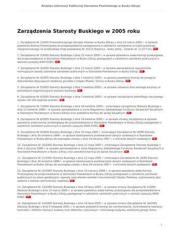 Zarządzenia Starosty Buskiego w 2005 roku - BIP