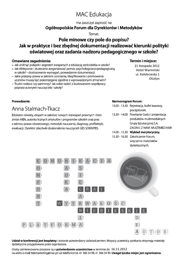 21 listopada 2012 Hotel Warmiński ul. Kołobrzeska 1 Olsztyn 16.11.2012