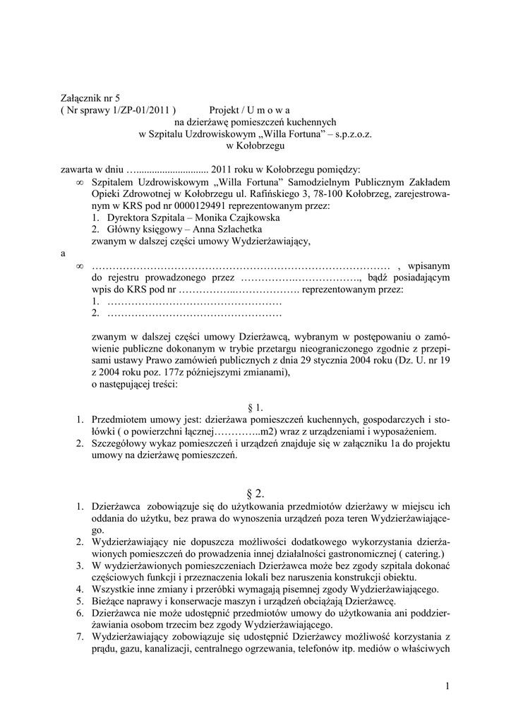 zał.nr 5-Projekt umowy na dzierżawę pomieszczeń