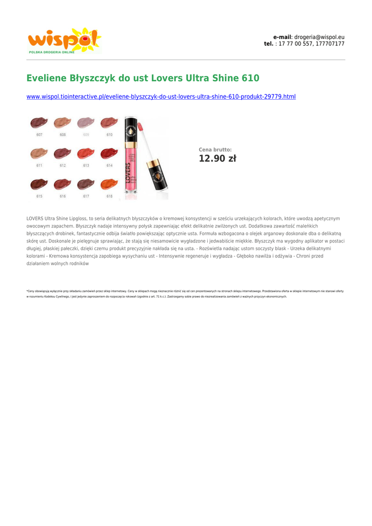 Eveliene Błyszczyk do ust Lovers Ultra Shine 610 12.90 zł
