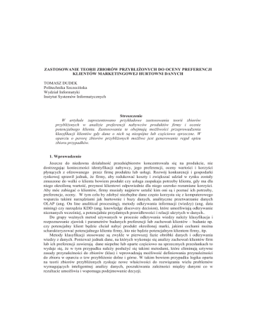 analizowanych własnoci i cech potencjalnych klientów. Jak zauwaa Stefanowski [1] niespójno