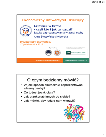 O czym będziemy mówić? - Ekonomiczny Uniwersytet Dziecięcy