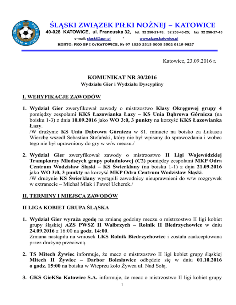 komunikat nr 30/2016 - Śląski Związek Piłki Nożnej