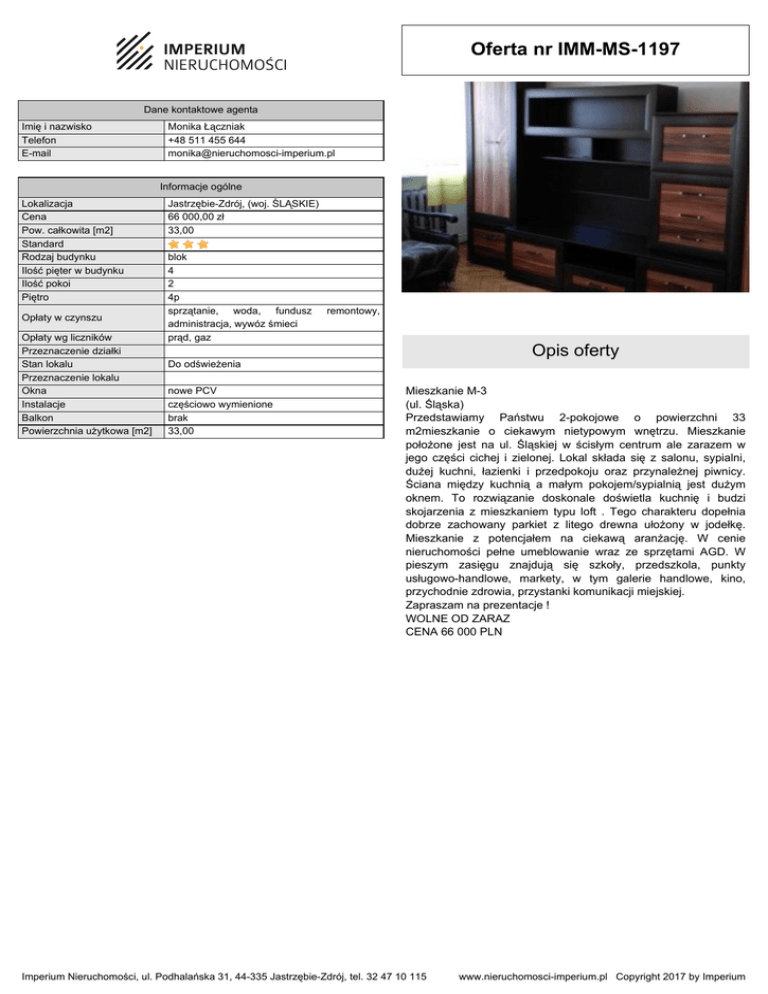 Oferta nr IMM-MS-1197 - Imperium Nieruchomości