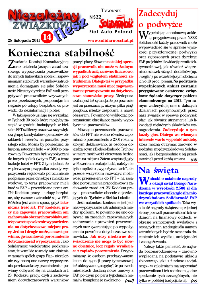 2011.11.28 nz flesz 14 - Aktualności | MOZ NSZZ Solidarność FAP