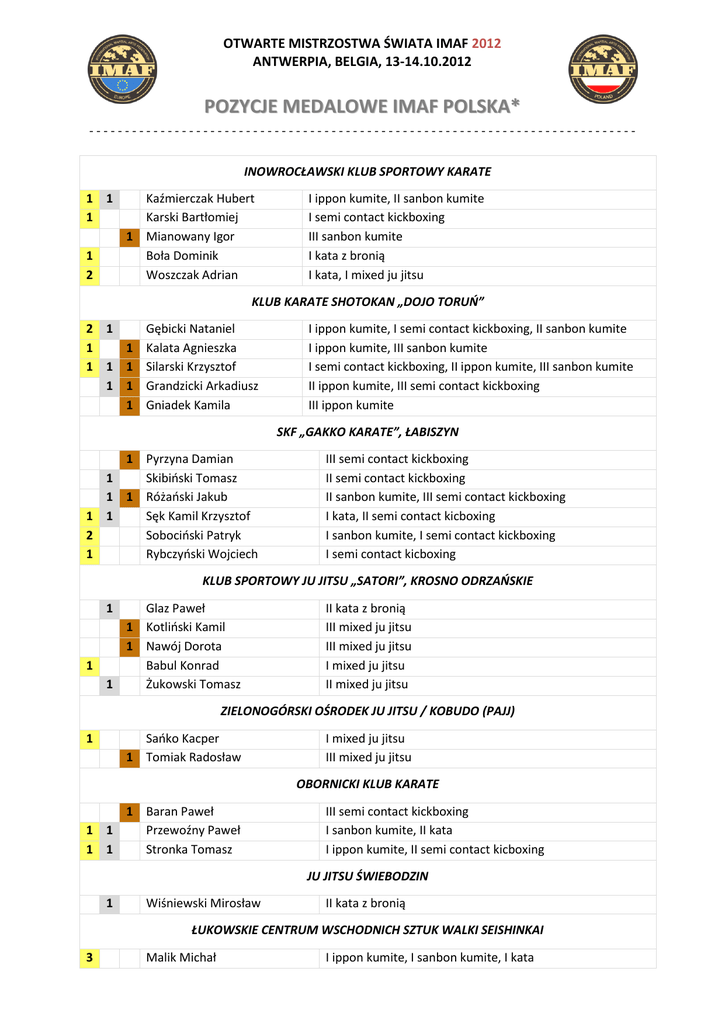 Wyniki reprezentantów IMAF POLSKA (pobierz plik )
