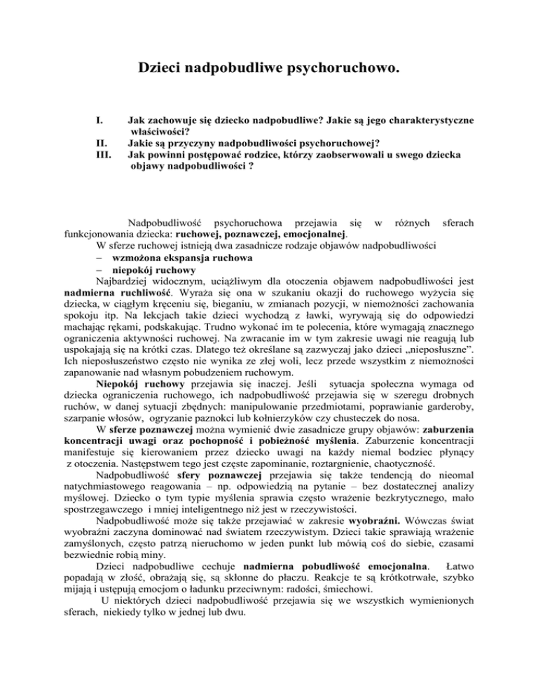Dzieci nadpobudliwe psychoruchowo.