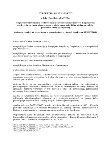 DYREKTYWA RADY 92/85/EWG z dnia 19 października 1992 r. w