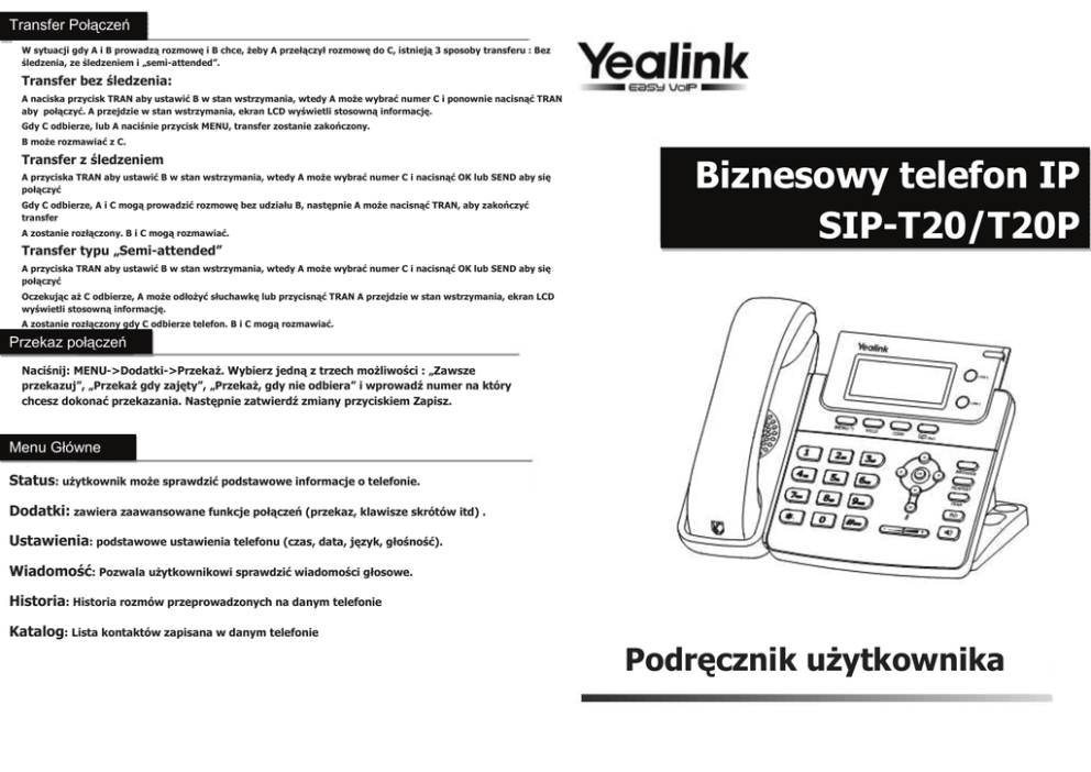 Biznesowy telefon IP SIP T20/T20P Podręcznik użytkownika