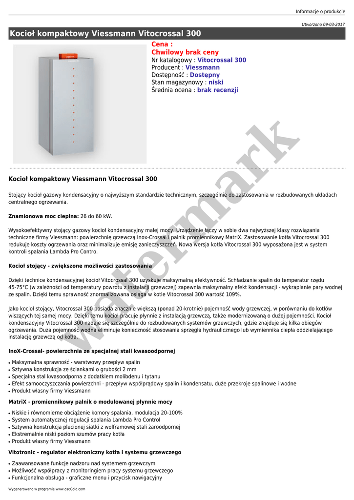 techniczne firmy Viessmann: powierzchnię grzewczą Inox-Crossal i palnik promiennikowy MatriX. Zastosowanie kotła Vitocrossal 300