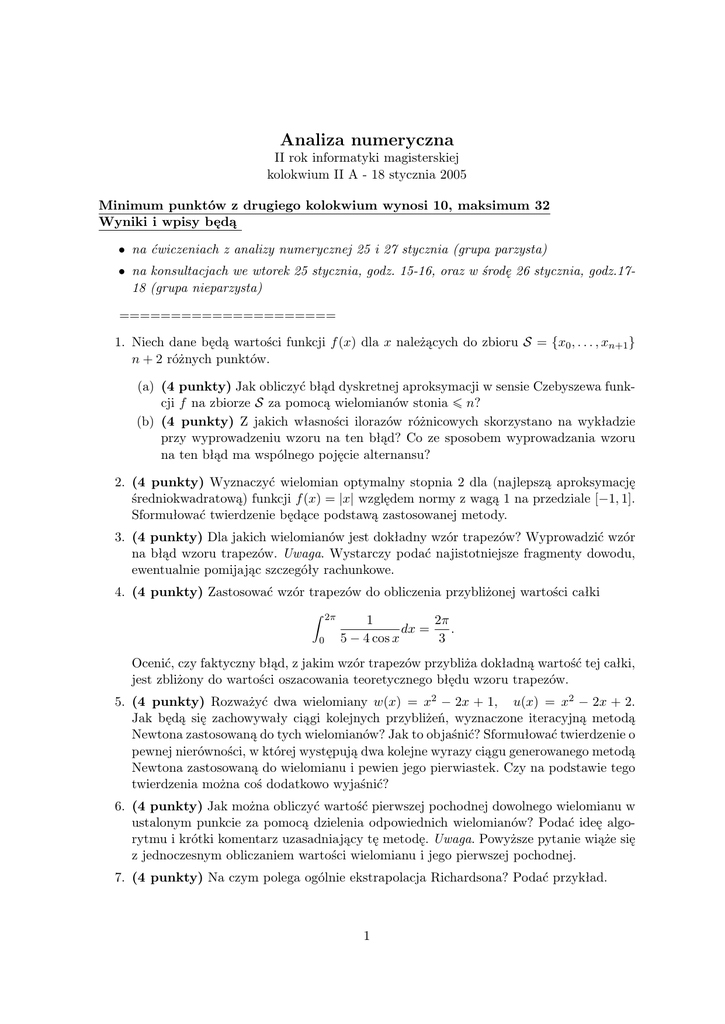 • na ćwiczeniach z analizy numerycznej 25 i 27 stycznia (grupa parzysta)