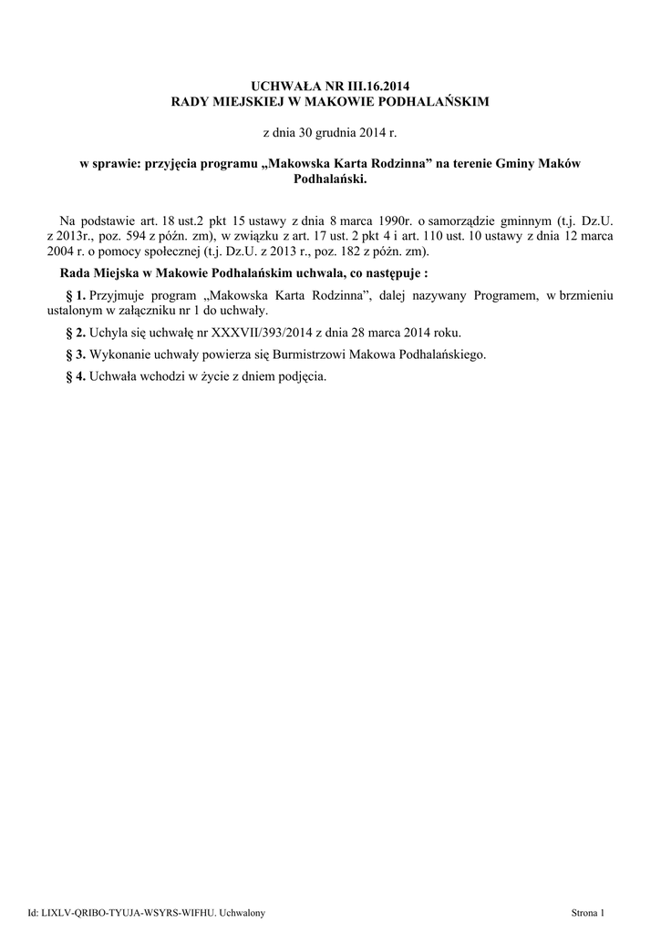 Uchwała III.16.2014 - Gmina Maków Podhalański