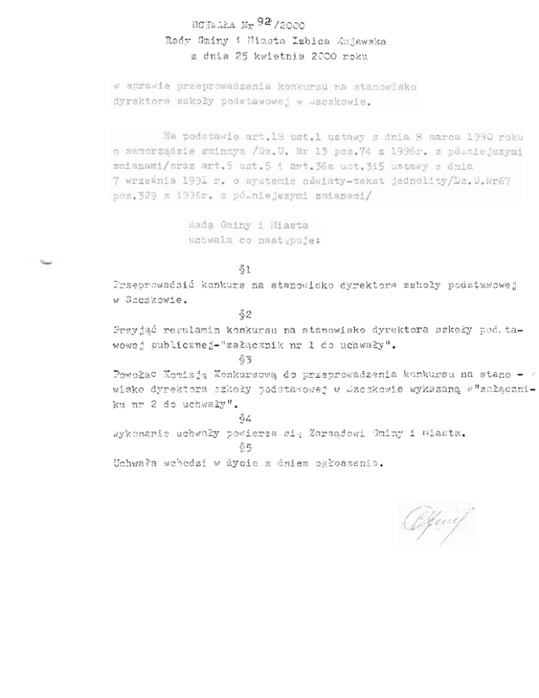 1.Konkurs na stanowisko dyrektora szkoly podstawowej oglasza