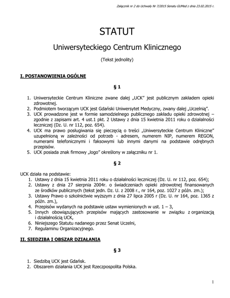 STATUT - Uniwersyteckie Centrum Kliniczne