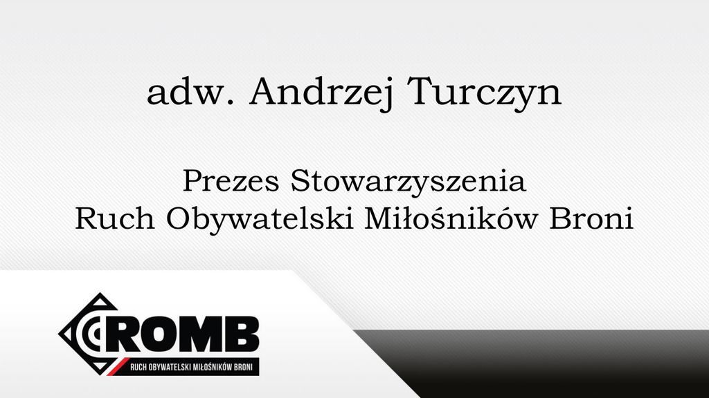adw. Andrzej Turczyn Prezes Stowarzyszenia Ruch Obywatelski Miłośników Broni Przyczyny upadku kultury posiadania broni palnej w Polsce. Surowość represji karnej, obrazuje postawę władzy (rządu) wobec represjonowanej dziedziny życia społecznego. Kultura posiadania broni palnej w Polsce Dekret Naczelnika Państwa z dnia 25 stycznia 1919 r. o nabywaniu i posiadaniu broni i amunicji: art. 5 Winni przekroczenia przepisów, zawartych w niniejszym dekrecie, ulegną następującym karom: a) za posiadanie broni wojskowej lub materiałów i przedmiotów służących do użytku wojskowego – zamknięcia w więzieniu do 1 roku lub grzywny do 5000 marek, b) za posiadanie broni myśliwskiej lub krótkiej palnej – aresztu do 3 miesięcy lub grzywny do 3000 marek. Kultura posiadania broni palnej w Polsce Rozporządzenie Prezydenta Rzeczypospolitej z dnia 27 października 1932 r. Prawo o broni, amunicji i materiałach wybuchowych: art. 47 (1) Kto bezprawnie wyrabia, posiada, przechowuje, lub pozbywa broń palną typu wojskowego lub amunicję do takiej broni, z wyjątkiem broni krótkiej i amunicji do niej – podlega karze więzienia do lat 3 lub aresztu do lat 3, art. 48 (1) Kto bezprawnie wyrabia, posiada, przechowuje lub pozbywa broń palną krótką lub myśliwską, albo amunicję do takiej broni, podlega karze aresztu do 6 miesięcy lub karze grzywny do 5000 zł. Upadek kultury posiadania broni palnej w Polsce Dziedzina życia społecznego, która została poddana wzmożonej represji karnej ze strony władz komunistycznych, była przedmiotem szczególnego zainteresowania i planowano ją „odmienić” wobec stanu z przedwojennej Polski. Upadek kultury posiadania broni palnej w Polsce Dekret z dnia 13 czerwca 1946 r. o przestępstwach szczególnie niebezpiecznych w okresie odbudowy państwa: art. 4§1 Kto bez zezwolenia wyrabia, gromadzi, lub przechowuje broń palną, amunicję, materiały lub przyrządy wybuchowe albo inne przedmioty mogące sprowadzić niebezpieczeństwo powszechne podlega karze więzienia na czas nie krótszy od 5 lat lub dożywotnio albo karze śmierci Upadek kultury posiadania broni palnej w Polsce Nielegalne posiadanie broni występowało zawsze w sytuacji, gdy pozwolenie na broń nie było wydane przez władzę komunistyczną. Upadek kultury posiadania broni palnej w Polsce W latach 1946-1949 za nielegalne posiadanie broni skazano ponad 19 000 osób. W ogólnej liczbie wyroków wydawanych przez sądy wojskowe, skazania za nielegalne posiadanie broni stanowiły od 37,3 % do 48,4% ogólnej ilości spraw karnych. Rozbrojenie Polaków 100 Polaków posiada łącznie 1 egzemplarz broni palnej (142) 100 Niemców posiada łącznie 30,3 egzemplarzy broni (15) 100 Czechów posiada łącznie 16,3 egzemplarzy broni 100 Słowaków posiada łącznie 8,3 egzemplarzy broni 100 Szwajcarów posiada łącznie 45,7 egzemplarzy broni (3) 100 Amerykanów posiada łącznie 88,8 egzemplarzy broni palnej Rozbrojenie Polaków Od czasu zwalczania przez komunistów niepodległościowego podziemia („band zbrojnych”) aż do dzisiaj powielane jest twierdzenie: posiadający broń praworządny i zdrowy psychicznie Polak, stanowi zagrożenie dla porządku i bezpieczeństwa publicznego. Niezbędne środki naprawcze Odbudowa kultury posiadania broni palnej 1. 2. 3. 4. pozbawienie Policji prawa wydawania pozwoleń na broń racjonalizacja przepisów – uchwalenie nowej ustawy istotne zwiększenie ilości broni w rękach praworządnych Polaków zbudowanie sprawnej (lub wielu) organizacji społecznej, kontrolującej działania administracyjne i polityczne