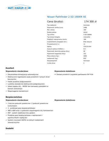 Nissan Pathfinder 2.5D 190KM XE Cena (brutto