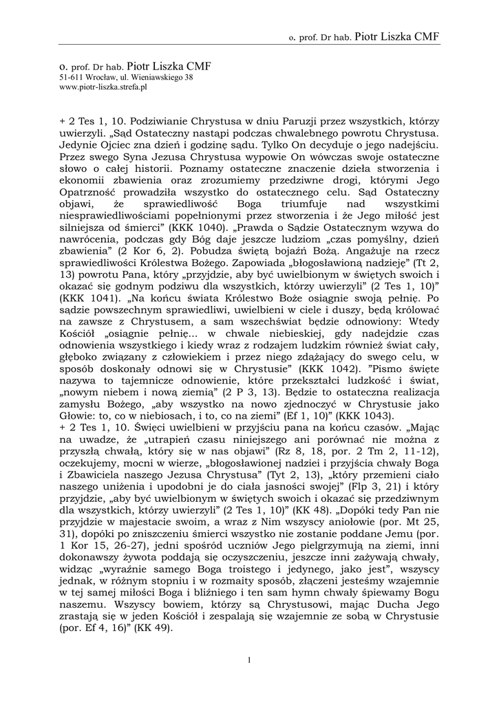2 Tes - prof. Dr hab. Piotr Liszka CMF