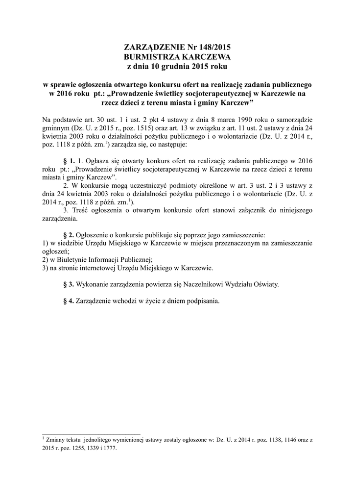 ZARZĄDZENIE Nr 148/2015 BURMISTRZA KARCZEWA z dnia 10
