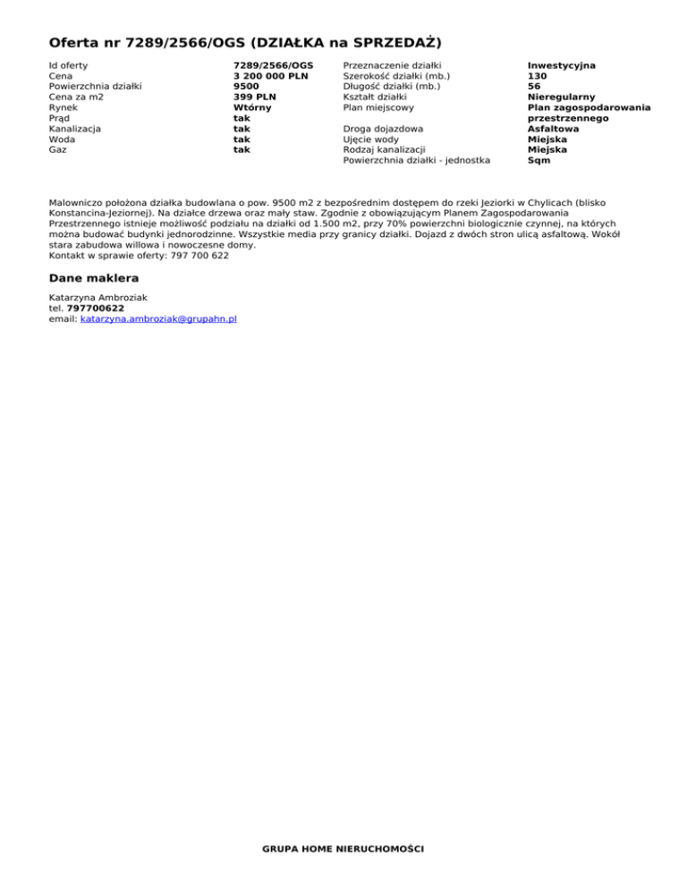 Oferta nr 7289/2566/OGS (DZIAŁKA na SPRZEDAŻ)