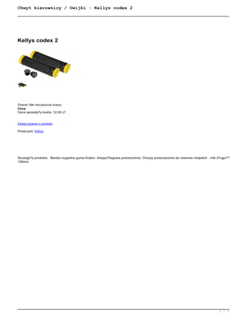 Chwyt kierownicy / Owijki : Kellys codex 2 Kellys codex 2 Ocena: Nie ma jeszcze oceny Cena Cena sprzeda?y brutto: 12,00 z? Zadaj pytanie o produkt Producent: Kellys Szczegó?y produktu Bardzo wygodna guma Kraton. Antypo?lizgowa powierzchnia. Chwyty przeznaczone do rowerów miejskich , mtb d?ugo?? 128mm 1 / 1 Powered by TCPDF (www.tcpdf.org)