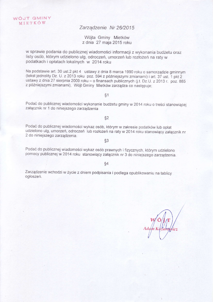 Zarzqdzenie Nr 26/2015 MIETKÓw
