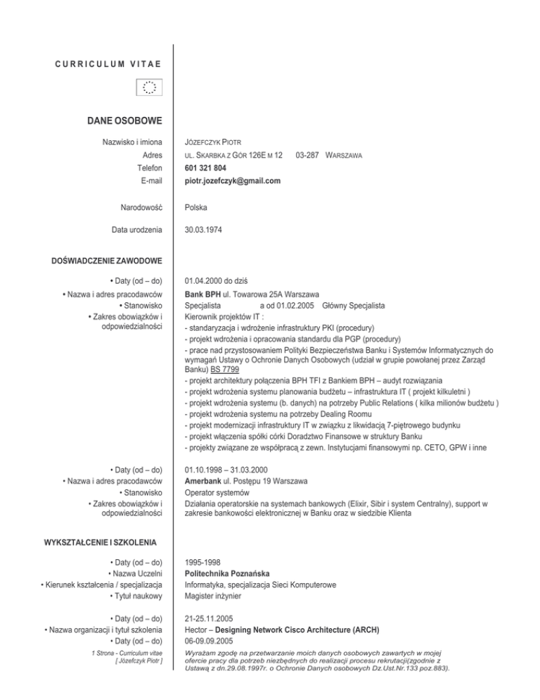 dane osobowe - Piotr Jozefczyk