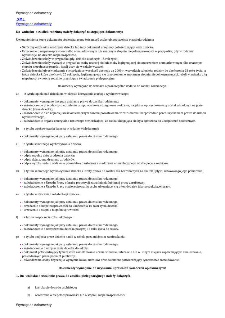 Wymagane dokumenty Wymagane dokumenty XML Wymagane