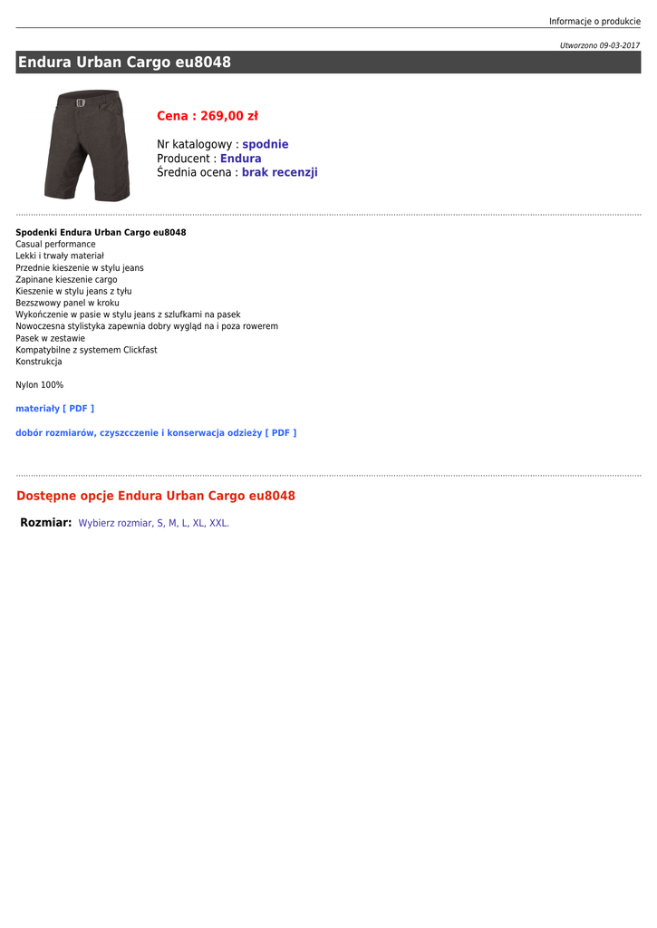 Informacje o produkcie Utworzono 09-03-2017 Endura Urban Cargo eu8048 Cena : 269,00 zł Nr katalogowy : spodnie Producent : Endura Średnia ocena : brak recenzji Spodenki Endura Urban Cargo eu8048 Casual performance Lekki i trwały materiał Przednie kieszenie w stylu jeans Zapinane kieszenie cargo Kieszenie w stylu jeans z tyłu Bezszwowy panel w kroku Wykończenie w pasie w stylu jeans z szlufkami na pasek Nowoczesna stylistyka zapewnia dobry wygląd na i poza rowerem Pasek w zestawie Kompatybilne z systemem Clickfast Konstrukcja Nylon 100% materiały [ PDF ] dobór rozmiarów, czyszcczenie i konserwacja odzieży [ PDF ] Dostępne opcje Endura Urban Cargo eu8048 Rozmiar: Wybierz rozmiar, S, M, L, XL, XXL.