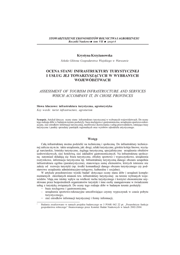 207 ocena stanu infrastruktury turystycznej i us£ug jej towarzysz