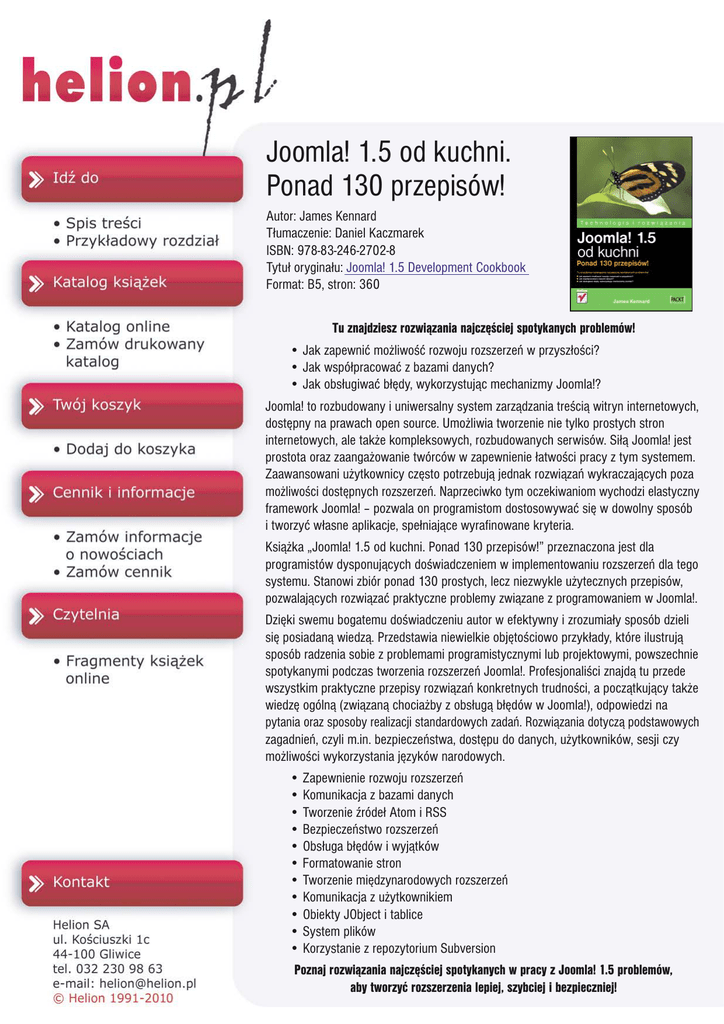 Tytu³ orygina³u: Joomla! 1.5 Development Cookbook